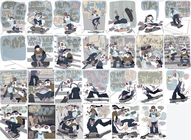 Well, this is the end of the year and the last post in this blog for 2015. This was not my most prolific year and in a way I failed it; I like to try and make more posts every year. This one didn't make it. The first image I have here is a sort of overview, one I posted on my tumblr that has a selected image for each month of the year. There's a lot of the mice and Ghiroy in there as that's what I focused on most. On the down side, I didn't start Ghiroy, though I did a LOT of work on it. On the plus side, I did start and finish a short comic of which I'm proud. I progressed, and that's the whole point. So next year, I'll shoot for more posts, more art and more improvement.